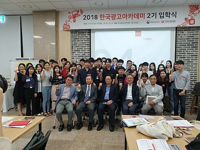 '2018 한국광고 아카데미 2기' 입학식에서 입학 학생들과 기념촬영.