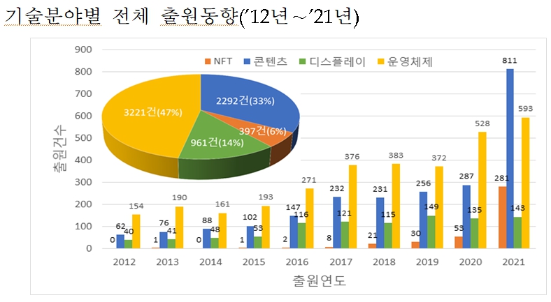 확장가상세계 대체 불가능 토큰(NFT)·콘텐츠 특허출원 전년대비 각각 5.3, 2.8배 폭증